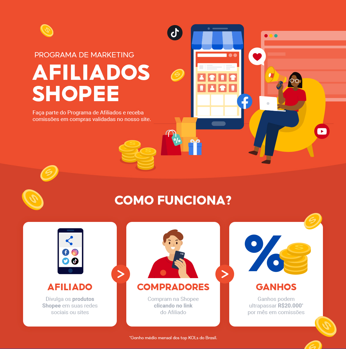 A Shopee também tem um Programa de Afiliados e também conta com uma vasta opção de produtos que você pode divulgar nas suas plataformas.