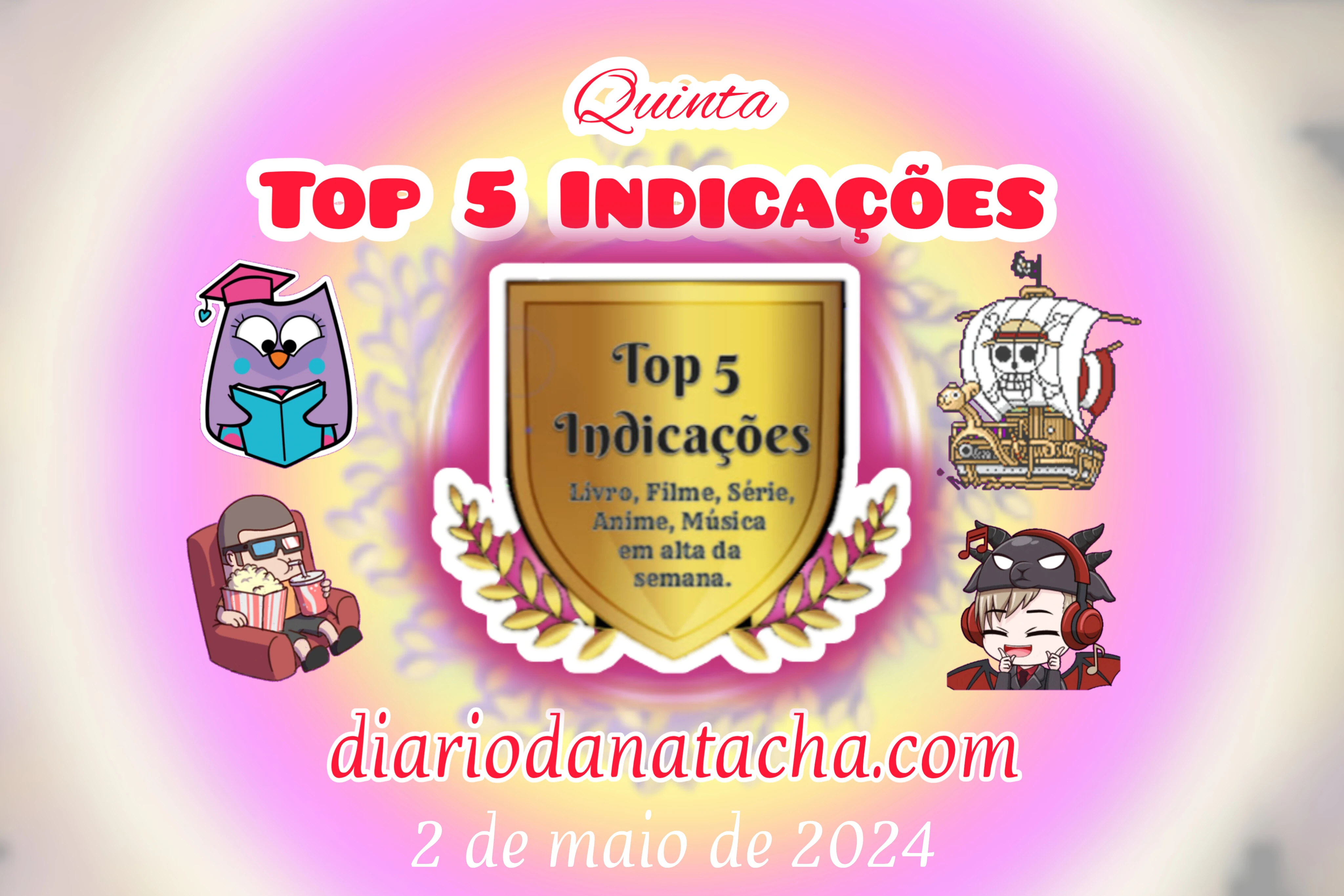 E vamos para mais um Top 5 Indicações, onde a gente elenca o Livro, Filme, Série, Anime, Música que estiveram em alta na semana.